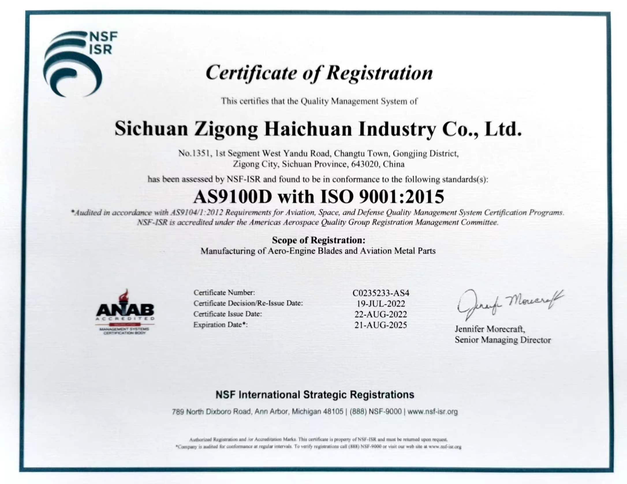 航標(biāo)認(rèn)證證書(shū)(英文版)